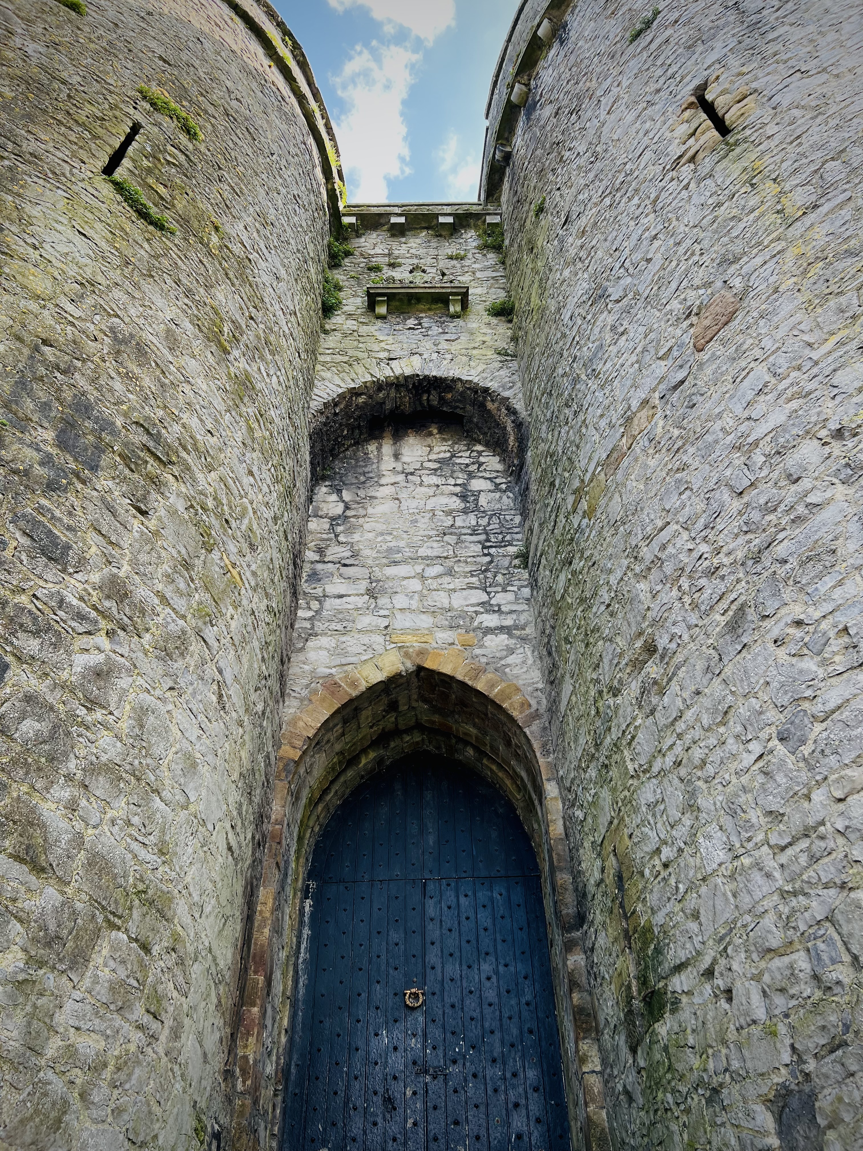 The Twin Towered Gatehouse built in 1212, and the oldest surviving feature below: